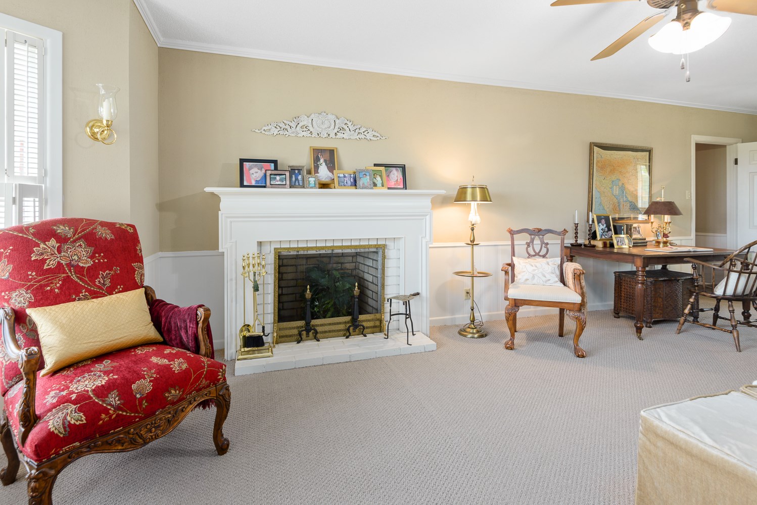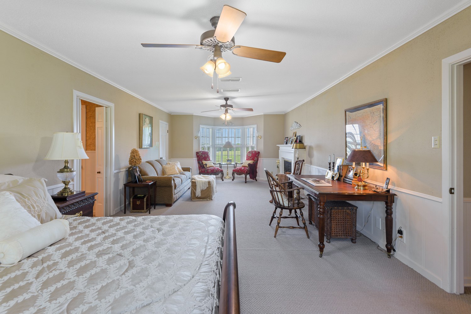 The Hilltop Country Home has 3407 square feet of heated and cooled space centered around an extremely spacious entertainment room with a combination country kitchen, breakfast bar, formal dining area, half bath and a most inviting sitting area all surrounded by a wall of windows offering wonderful views of the ranch. The 2-bedroom 2.5 bath country home has a very large master suite with sitting area and fireplace. The master bathroom has oversized shower, double sinks and separate private potty room. The grand entry leads you to the oversized Den with fireplace with beautiful solid wood paneling and original brick floors offering a warm and cozy atmosphere. The original country kitchen has all the built-ins for overflow cooking during large gatherings including oven and microwave. The breakfast room has easy access to both kitchen areas and a great view.